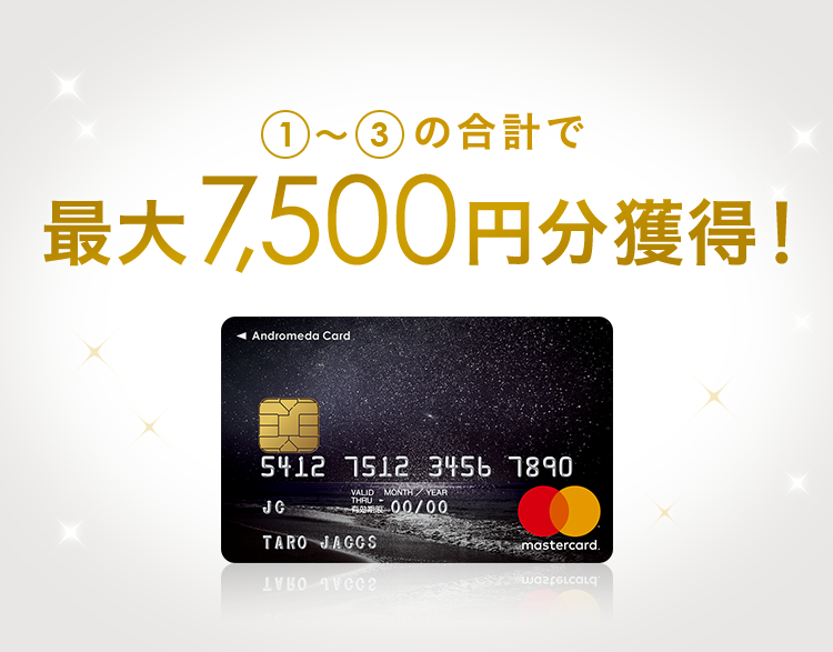 お手元にAndromeda Cardが届いてから3ヶ月以内のカードショッピングご利用金額に応じて、Google Payでご利用いただける「Google Pay専用デポジット」をプレゼントいたします。お買い物をさらにおトクにご利用いただけます!