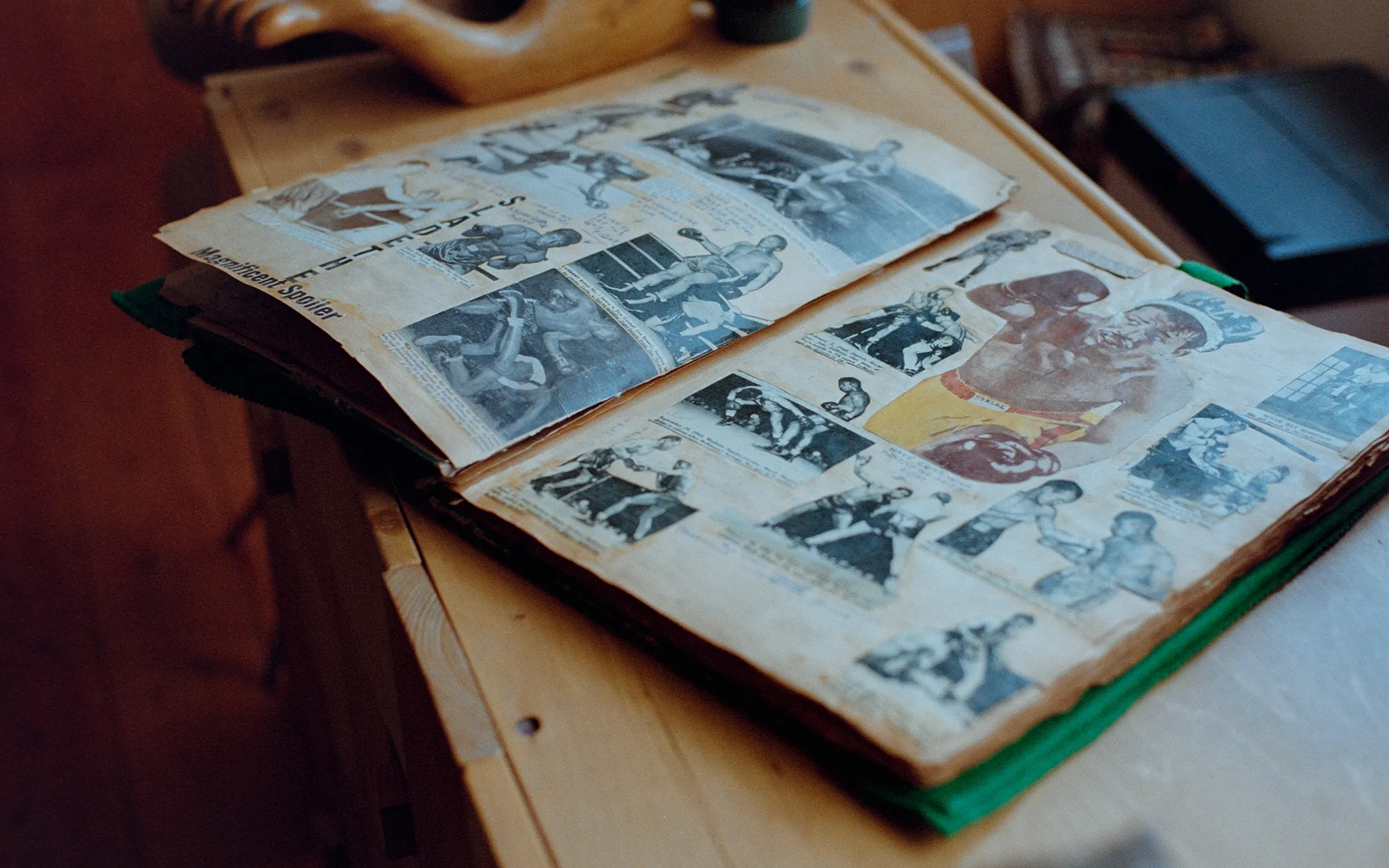 「当時のボクシングに関する記事や写真が、誰かの手によって丁寧に、そして情熱的に切り抜かれ、貼られていました。切り抜きのエッジの揃い方や、余白の取り方一つとっても、スクラップした人のセンスと熱量が感じられるんです。黄ばんだ新聞の記事に、当時の熱狂が閉じ込められているようで、たまりません」