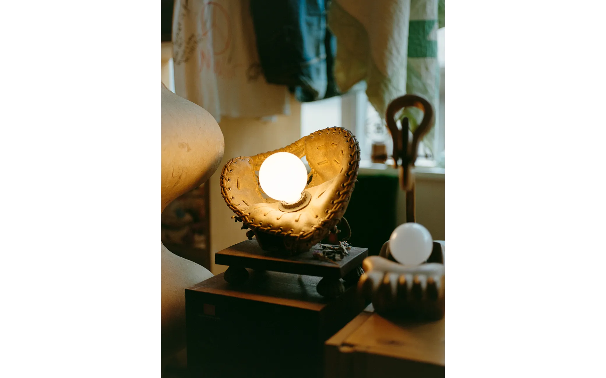 「野球のことは詳しくないので、これがキャッチャーミットだとお客さんに教えてもらって分かったくらいなんですけど(笑)。でも、見た瞬間に素晴らしく良いと思いました。使い込まれて黒ずんだミットに、ソケットと電球という異質な要素が合わさっている。その見た目だけで、完全にやられました」